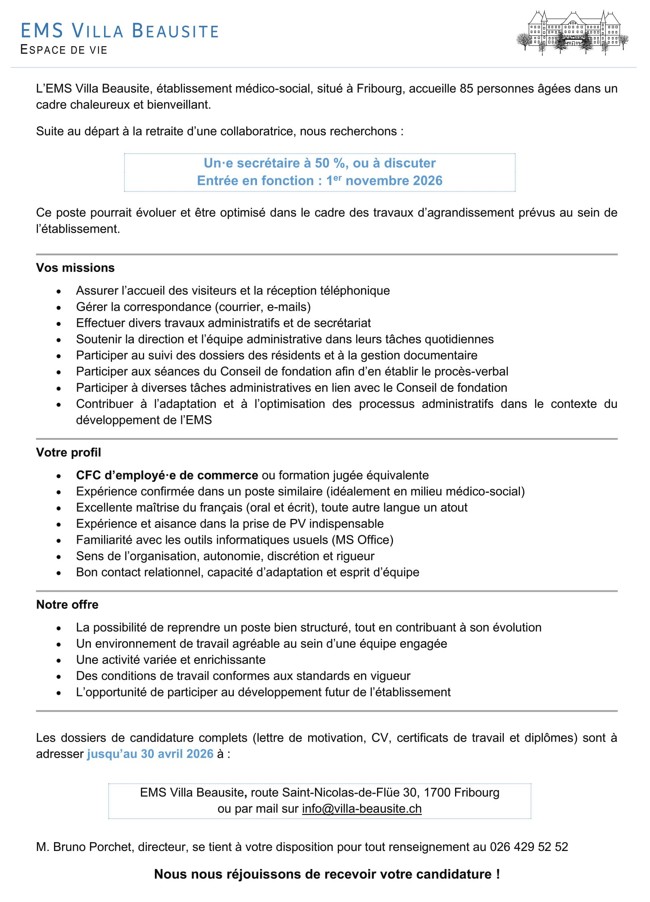 Pour tout renseignement, veuillez vous adresser au 026 429 52 52 ou par mail à info@villa-beausite.ch